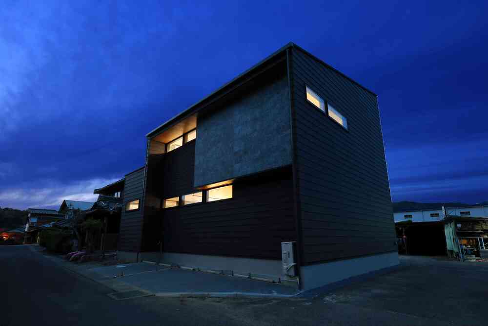 【1枚目の写真】外観にはメインでガルバリウム鋼板を使用し、道に面している壁面の一部に天然石を使用しました。全体を黒で統一し、シックにまとまったデザインに仕上げました。