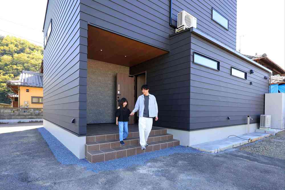 【2枚目の写真】玄関はガレージのように広々とした空間です。道路側から見えない死角になることを生かし、自転車などさまざまなものを置いておける空間として使えるよう設計しました。